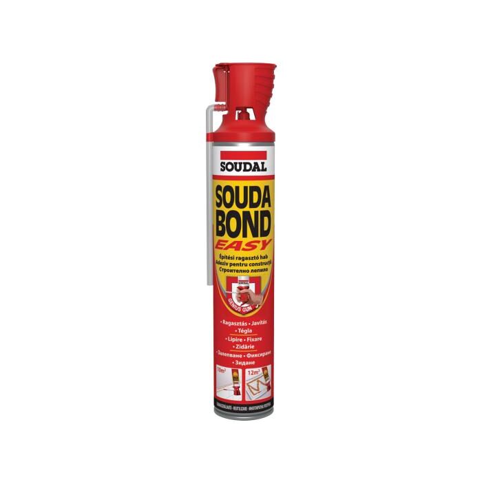 Soudabond Easy, adeziv poliuretanic de înaltă performanță sub formă de spumă. Rapid și ușor de folosit, nu necesită mixare. Înlocuiește adezivul praf clasic. Formula specială combină aderența puternică cu caracteristici de umplere, potrivit pentru suprafețe denivelate. Recomandat pentru lipirea multor materiale din construcții, cum ar fi panouri termoizolante, plăci de gips-carton și construirea pereților intermediari neportanți, utilizând blocuri aerate de cărămidă. Pistolul Genius ® este un mecanism patentat utilizat la extrudarea spumei din tub, cu un design ce facilitează utilizarea cu o singură mână. Datorită aplicatorului resigilant, tubul poate fi reutilizat cu pănâ la 6 sâptâmăni după prima utilizare.