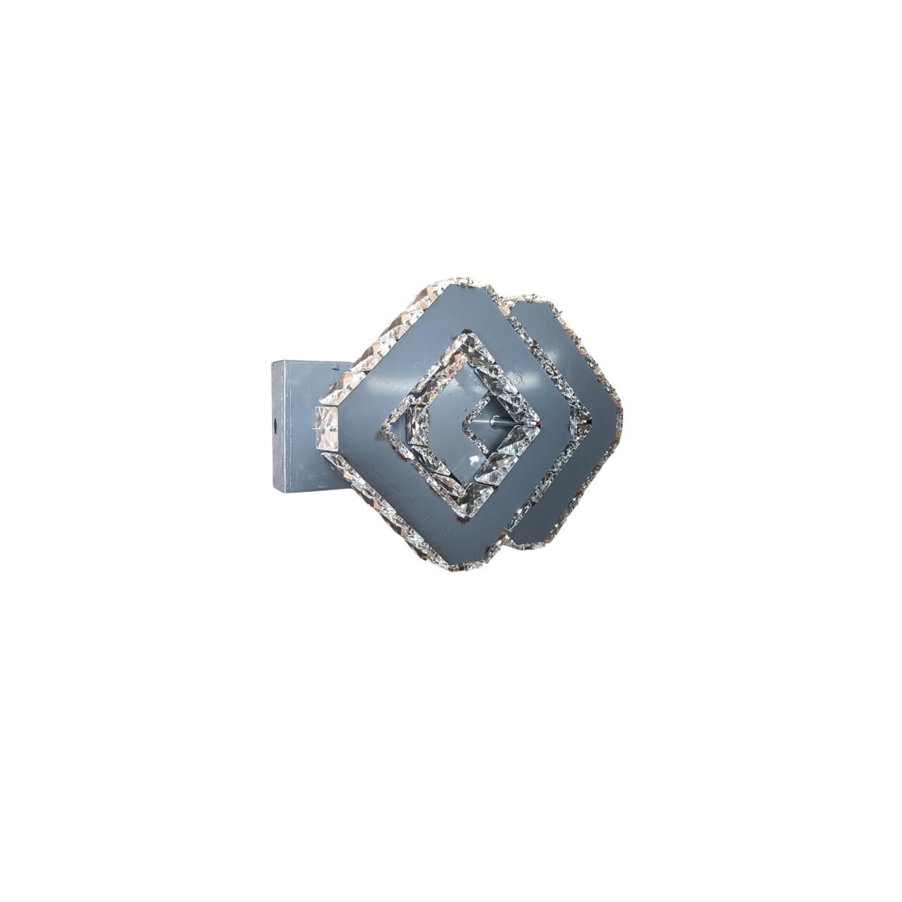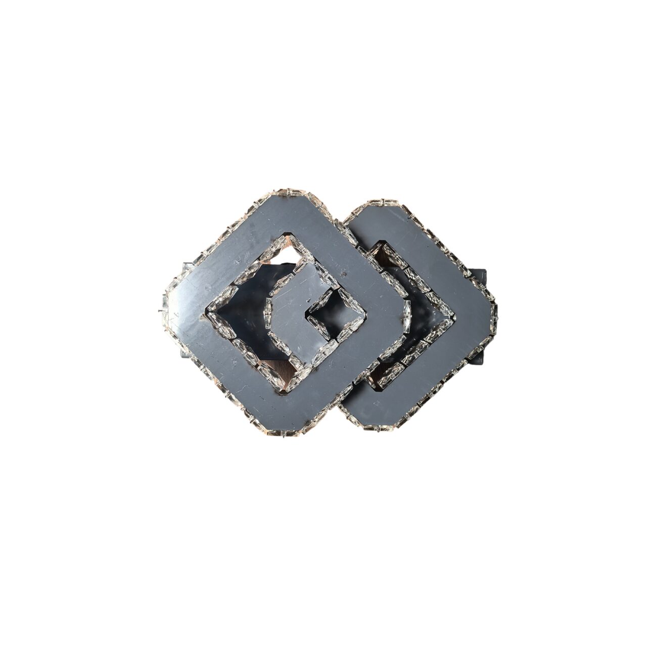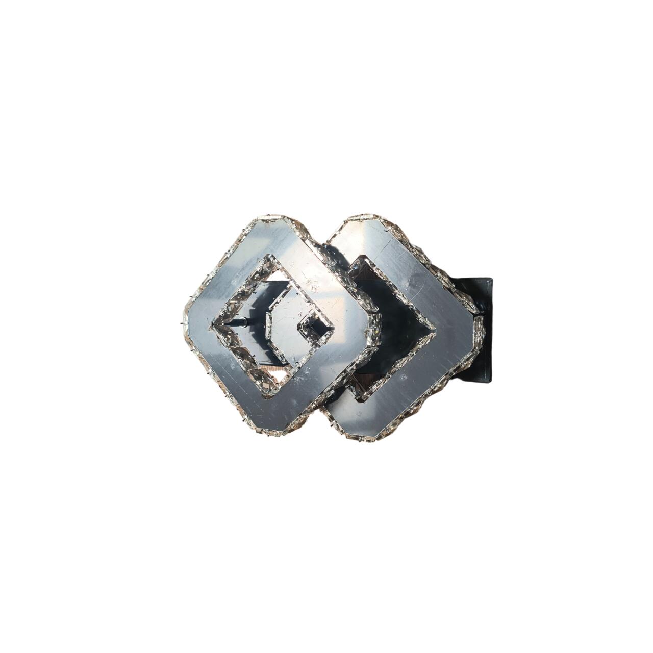 Designul său sofisticat include cristale montate pe margini, oglindă pe bază și în interiorul pătratelor, adăugând un plus de reflexie și eleganță. Este o piesă decorativă și funcțională în același timp.
