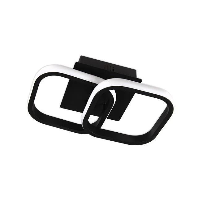Aplică LED de tavan cu design modern și elegant, finisaj negru mat și lumină alb natural – o alegere stilată pentru spații contemporane. Dimensiunea totală de 330x165 mm este dată de cele două pătrate luminoase dispuse în linie, oferind un efect vizual inedit. Se montează ușor pe tavan, funcționează în intervalul de tensiune 90-260V și este ideală pentru living, birou, dormitor sau zone comerciale. Combină perfect estetica minimalistă cu funcționalitatea eficientă a iluminatului LED.