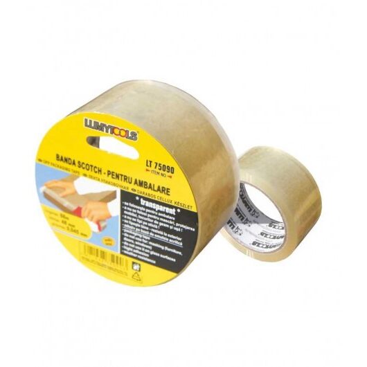 Banda scotch pentru ambalare LT75091 - MARO. Se foloseste pentru ambalare. A nu se folosi pentru mascari, protejarea mobilei, tocurilor de geam si a usii. A nu se lipi pe sticla. Adeziv pe baza de emulsie acrilica.