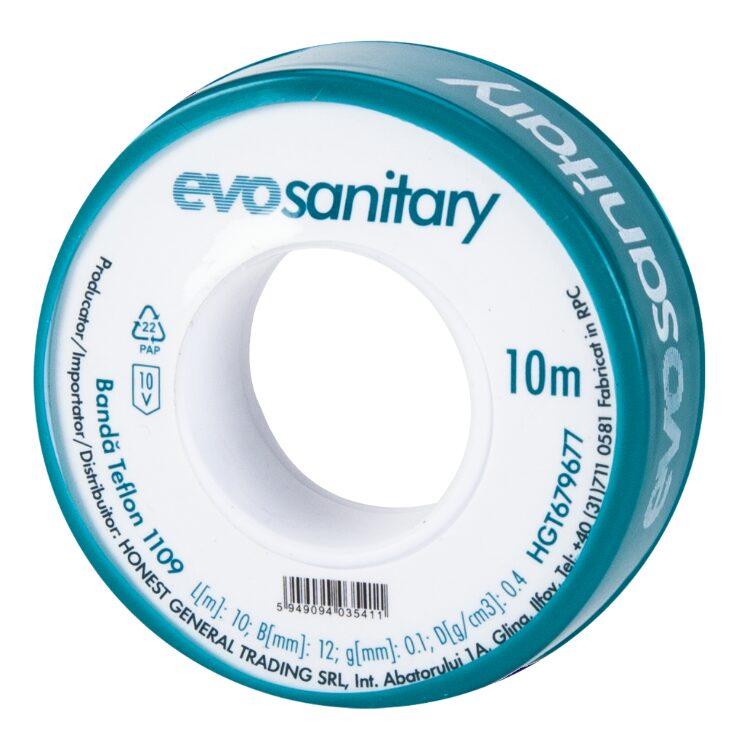 Banda de etansare PTFE pentru imbinarea filetelor din metal sau plasticrezistenta la mucegai, la agenti chimici, detasabila, poate fi supusa la sarcini imediat.Nu este destinata etansarii instalatilor de apa potabila.Caracteristici tehnice :1.Material -PTFE -Politetrafluoroetilenă 2.Rezista la toti solventii si compusii chimici agresivi, cu exceptia fluorului gazos latemperaturi inalte, a triflorurii de clor, a metalelor alcaline topite sau in solutie.3.Proprietati: Inodora, insipida, insolubila4.Confectionare: rulata pe bobine de plasticAvantajele utilizarii benzii PTFE- sigileaza filete cu un diametru exterior de pana la 4 inch.sigileaza fitinguri strabatute de apa calda sau rece, aer comprimat.poate fi folosit pentru sigilarea fitingurilor din alama, cupru, crom, nichel, suprafetegalvanizate, otel inoxidabil, material plastic, otel, fonta.PH lucru 0-14 ;Temperatura de lucru : 0℃ to 285 ℃.Garantie 10 ani