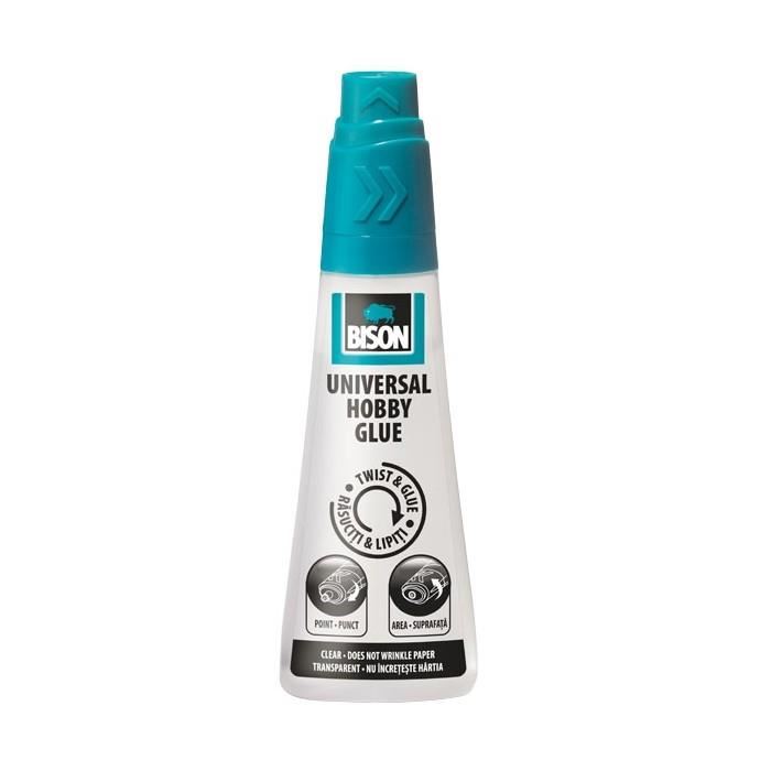 BISON Universal Hobby este un adeziv versatil și eficient, creat special pentru a rezolva o varietate de lucrări casnice și proiecte de hobby. Acesta este disponibil într-un recipient de 95 ml și conține solvent, ceea ce îi conferă o putere de adeziune superioară și o rezistență excelentă în diverse aplicații.