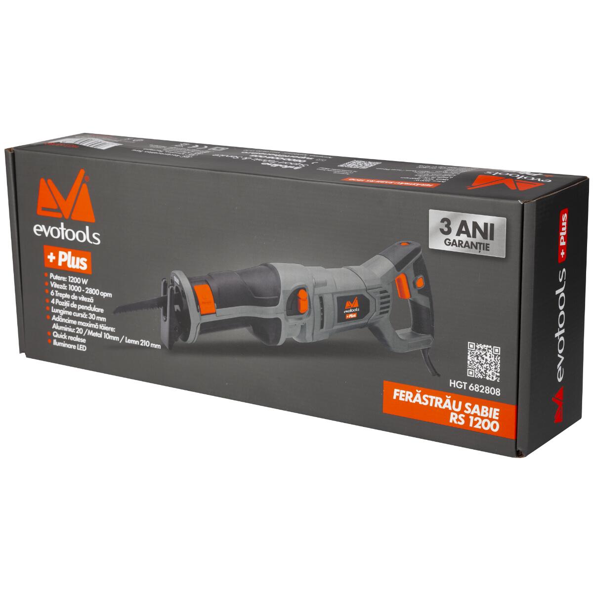 Ferastraul Sabie RS 1200 Evotools Plus este destinat uzului personal pentru operatiile de taiere a corpurilor din lemn si metal.