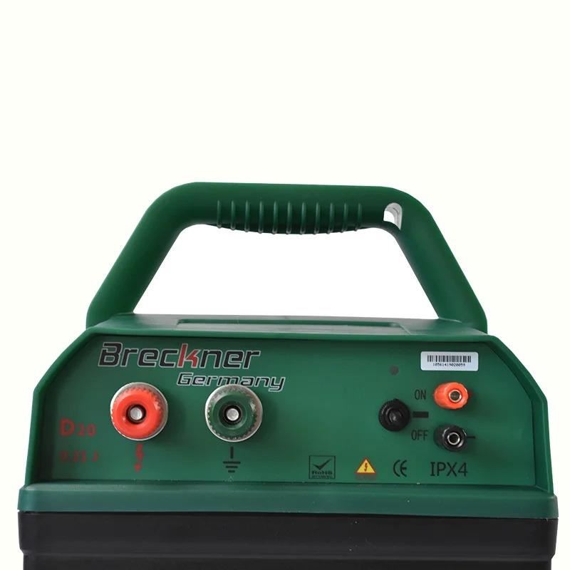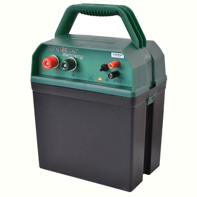 Generatorul de impulsuri pentru garduri electrice BRECKNER GERMANY poate electrifica pana la 1000 m de fir si genereaza impulsuri de 0.21 Joule. Acesta poate functiona atat cu acumulator de 9 sau 12 V.