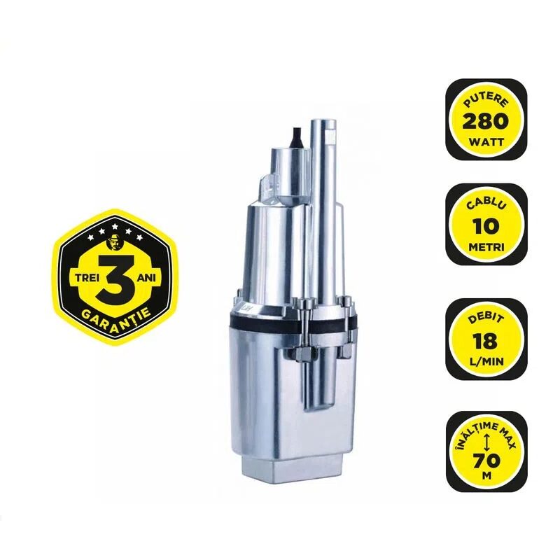 Pompa submersibilă de apă curată cu vibrații Gospodarul Profesionist VMP-60 este alegerea perfectă pentru nevoile tale de pompare în gospodărie sau în mediul profesional. Cu o putere de 280 de wați, această pompă asigură o performanță excelentă, manipulând cu succes transferul apei curate în diverse scenarii.