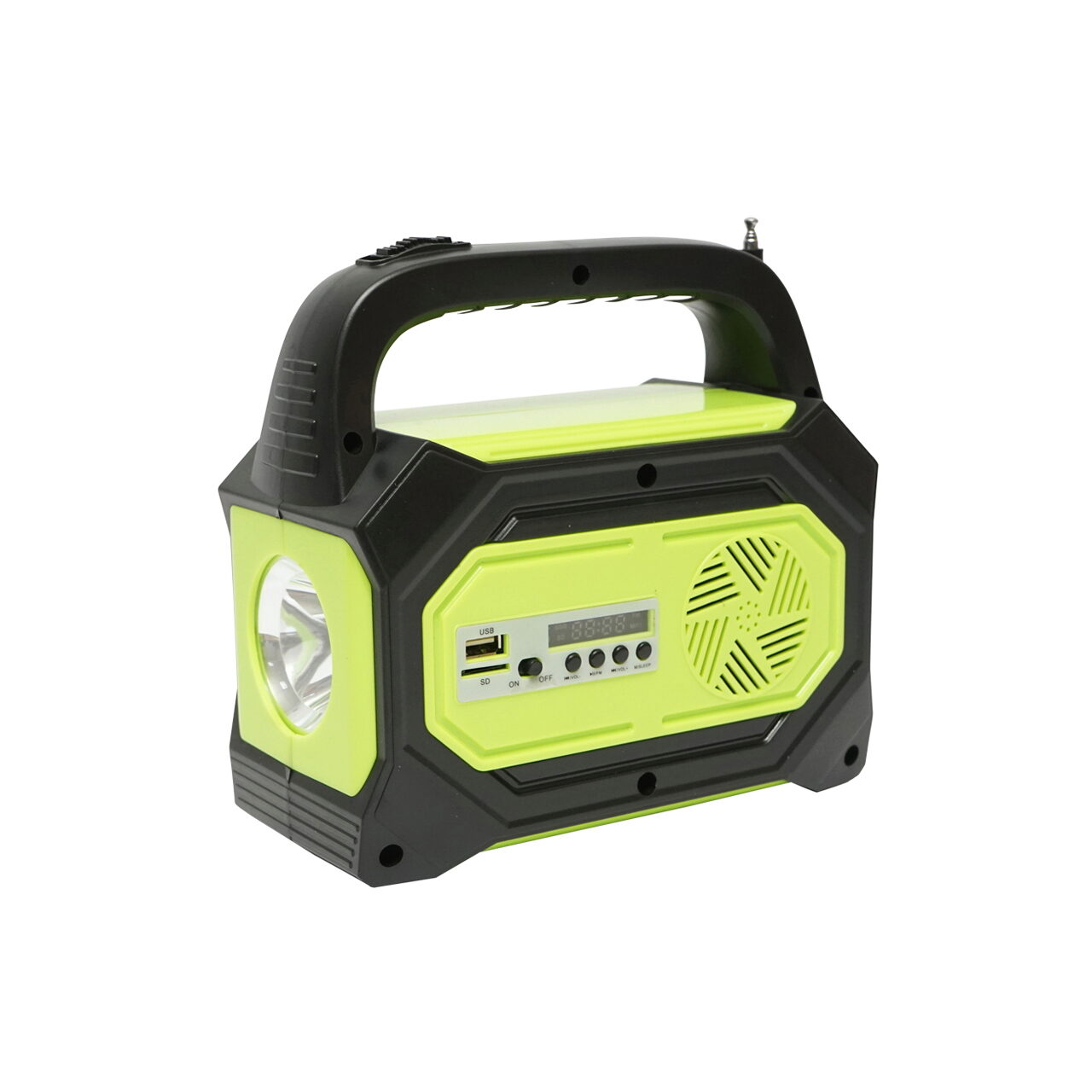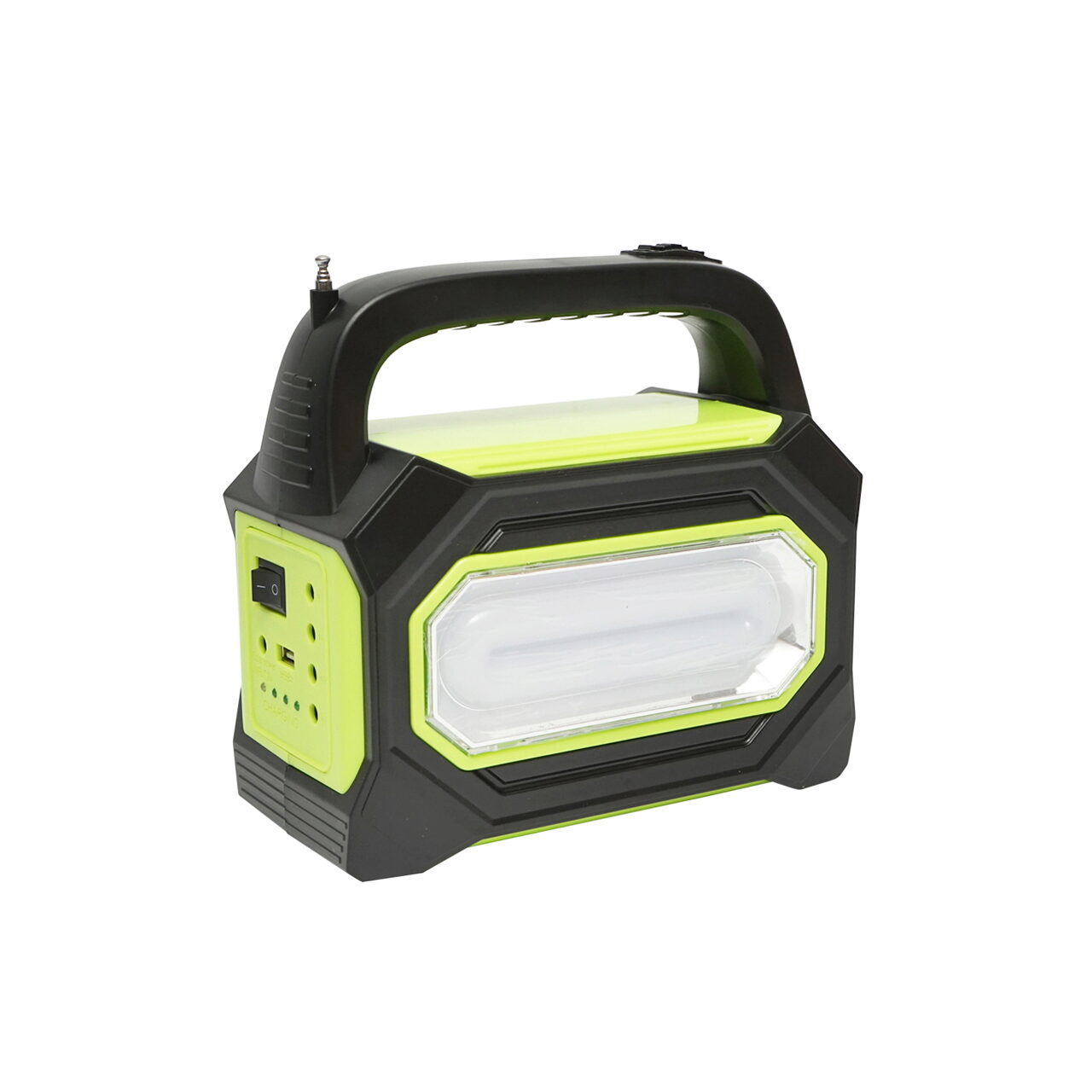 Kit iluminat portabil LED cu 3 becuri/proiector, radio FM, MP3, panou solar si baterie 6V, 4.5 Ah pentru pescuit camping GD-8073
