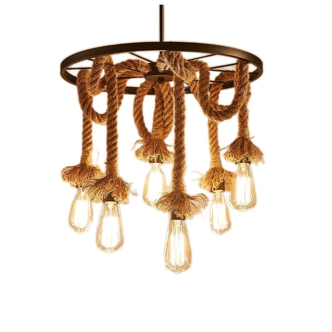 Adaugă un accent rustic și plin de caracter în orice încăpere sau spațiu exterior acoperit cu această lustră cu sfoară, ideală pentru foișoare, terase sau interioare amenajate în stil vintage-industrial.