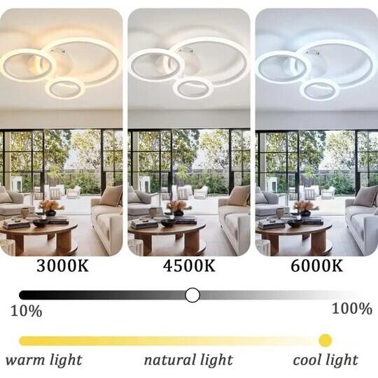 Această lustră LED cu telecomandă îți oferă flexibilitate completă asupra iluminării din locuință. Poți alege între lumină rece, naturală sau caldă, iar intensitatea luminoasă poate fi reglată ușor în funcție de nevoile tale.