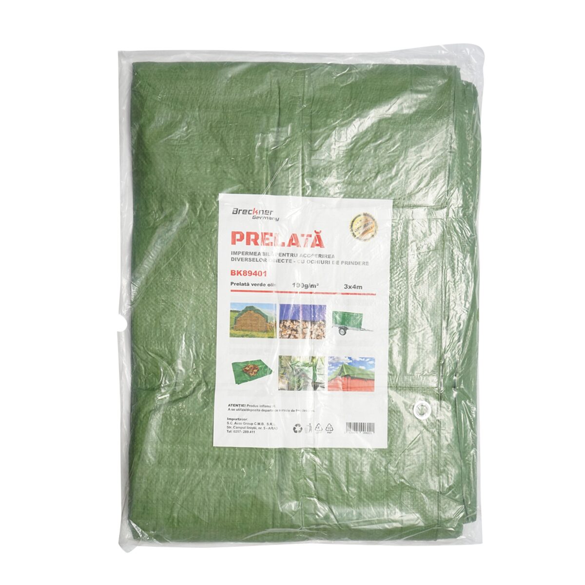 Prelata cu ochiuri de prindere 100g/m2 verde 3x4m
