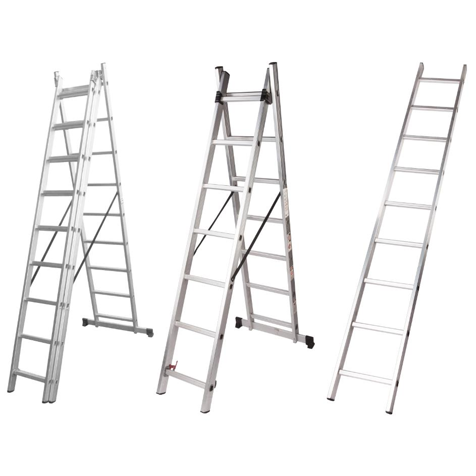 Scara din profile din aluminiu anodizatCapacitate portanta 150kg, conform EN 131Tronson de baza cu bara stabilizatoare, echipata cu terminatii din cauciuc antiderapant.Traverse cu profil antialunecareCurea de siguranta si dispozitiv blocare impotriva deschiderii accidentale.