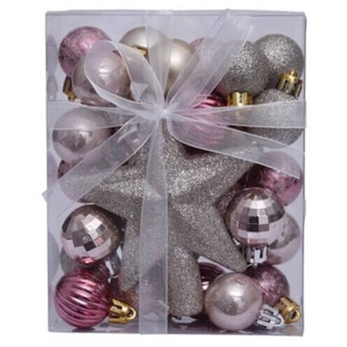 Set globuri brad 3cm + stea pink-argintiu Artezan 30 buc/cutie