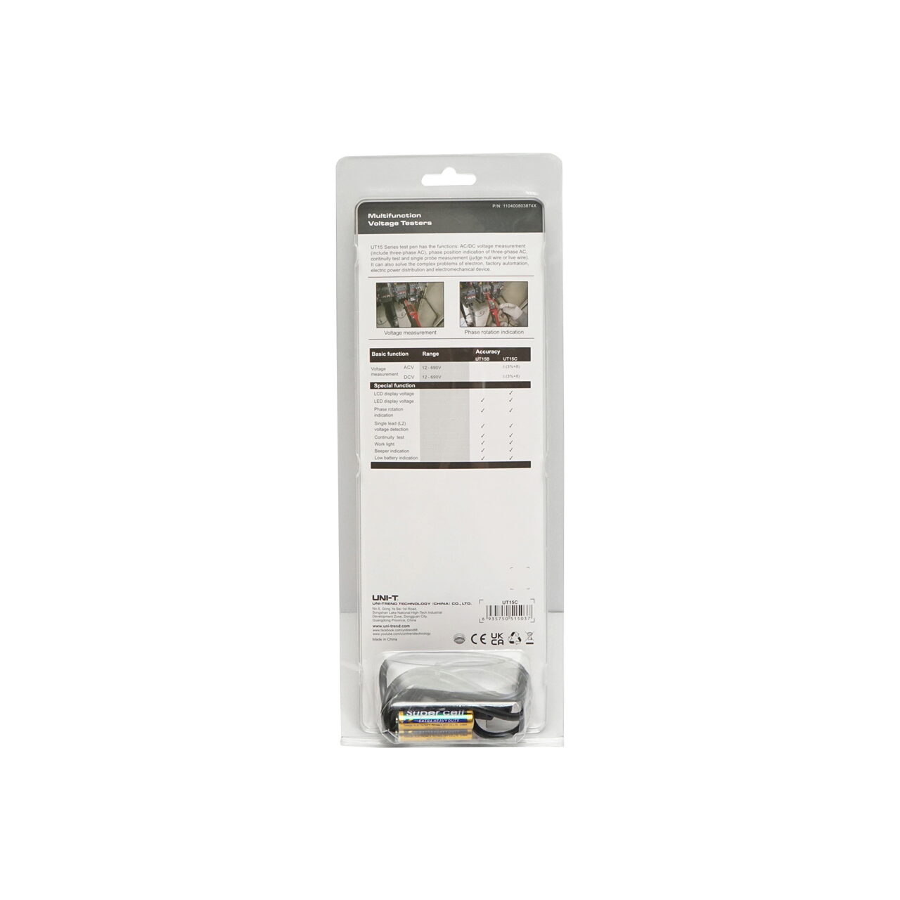 Tester tensiune AC/DC UT15C, 12-690V UNI-T