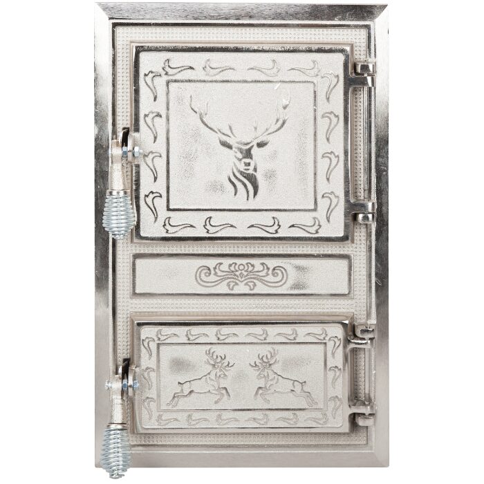 Usa Soba cu Geam + Cenusar Motive Romanesti Nichelata / H[mm]: 275+140; B[mm]: 255